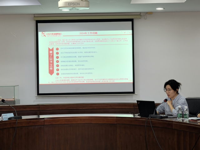 会上,基础医学院分团委副书记范涵婷就2025年全国两会精神和政府工作报告要点进行了领学,并以团干部视角分享了“挑战杯”项目攻关赋能的心路历程。校团委、文化艺术教育中心各科室负责人先后就思想引领、组织建设、实践育人、美育教育等工作进行了详细解读。