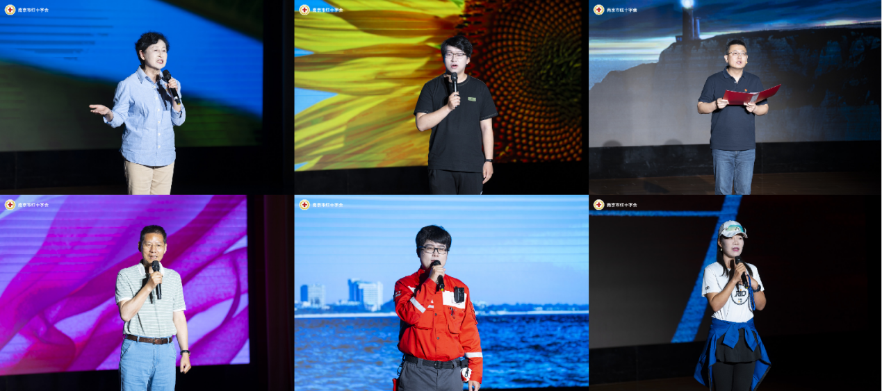 在宣讲环节,南京市“捐友”协会副会长崔旭、南京市红十字会应急救护先锋队队长刘雨辰、南京“黑暗跑团”陪跑员郁芳芳、南京市红十字会捐友会浦口区分会成员黄志坚,我校基础医学院人体解剖学系教授靳建亮、第一临床医学院本科生秦鹏等6位红十字志愿者分别讲述了自己的真实故事,展现了志愿者的责任与担当,诠释着生命不息、大爱永续的深刻意义,引导青年学生传承弘扬红十字精神。