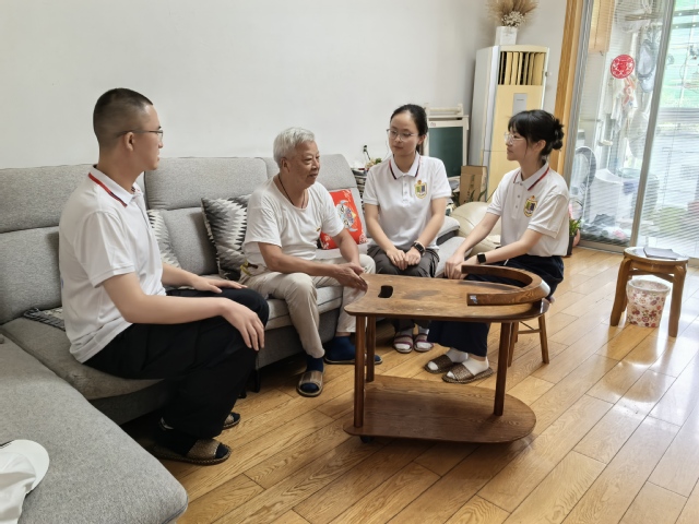7月1日,正值中国共产党成立104周年之际,实践团成员前往梅岭街道拜访了五位老党员。他们当中,有参军入伍报效家国的退伍军人,有扎根基层默默奉献的钢铁浇筑工,有坚守讲台深耕教育的退休教师,奉献在各个岗位的老前辈们共同为大家开设了一堂行走的“大思政课”。
