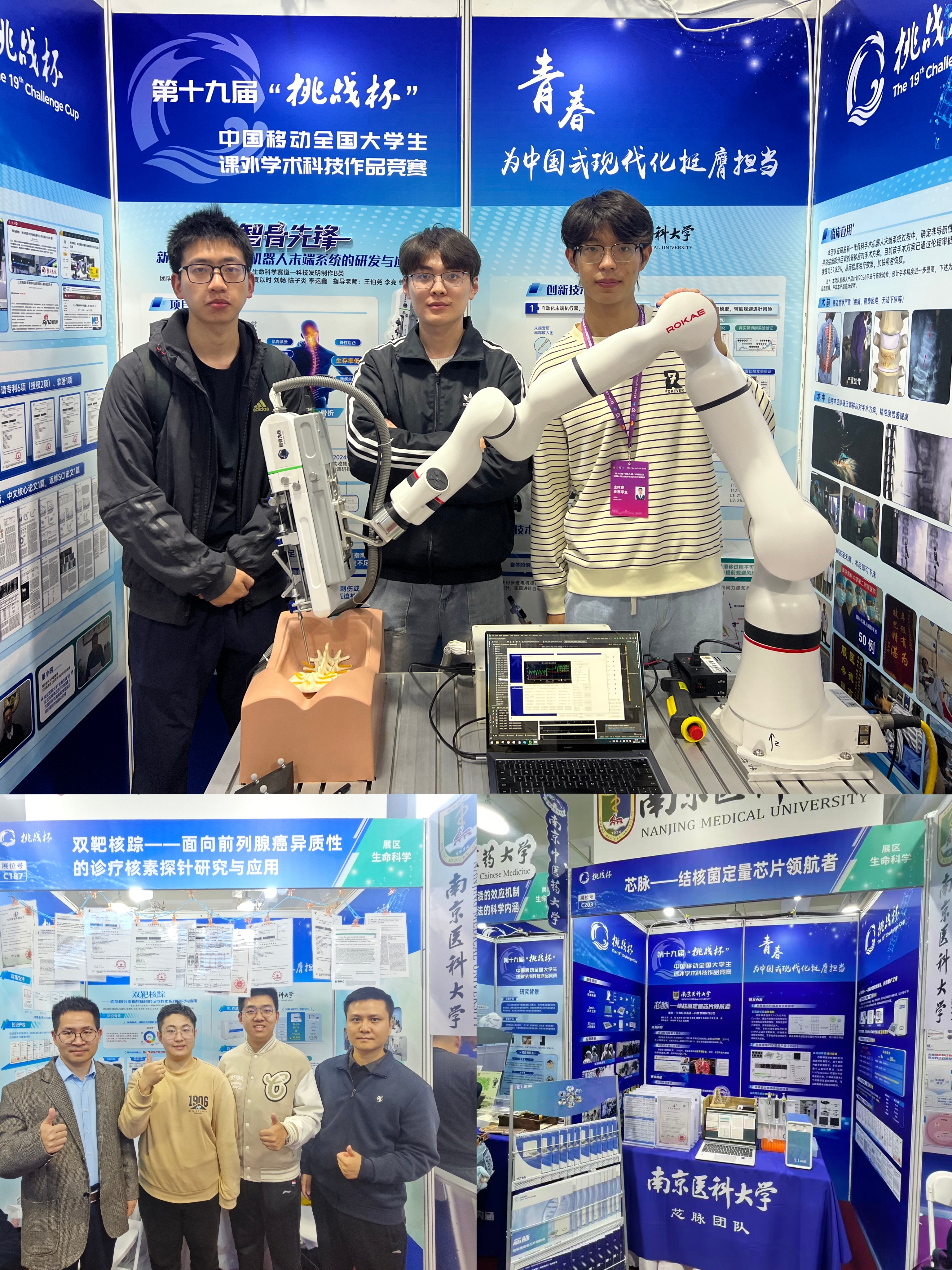 其中,药学院《双靶核踪——面向前列腺癌异质性的诊疗核素探针研究与应用》、护理学院《芯脉——结核菌定量芯片领航者》2项作品获国赛主体赛特等奖;第二临床医学院《智骨先锋——新一代骨科手术机器人末端系统的研发与应用》获国赛主体赛二等奖;口腔医学院《口腔颌骨微环境精准调控材料的研发与应用》获国赛主体赛三等奖。