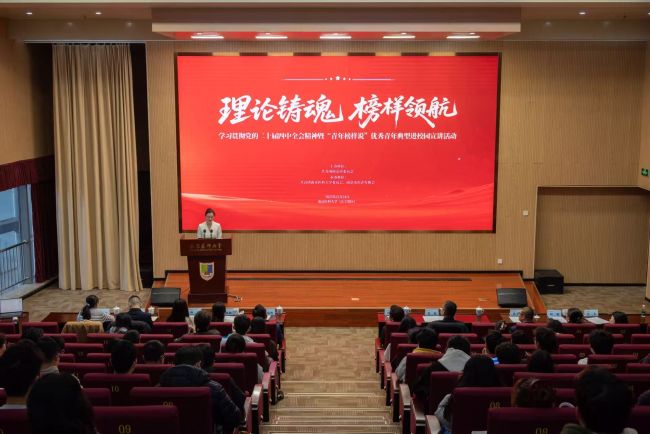 12月24日下午,由南京团市委主办,南京杰出青年协会与我校团委承办的“理论铸魂 榜样领航”——学习贯彻党的二十届四中全会精神暨“青年榜样说”优秀青年典型进校园宣讲活动在江宁校区德馨楼D201报告厅举行。校党委常委、副校长沈瑞林,共青团江苏省委兼职副书记、南京杰出青年协会会长刘伯敏,共青团南京市委副书记翁侃,共青团南京市委组织部副部长(主持工作)徐卉,校团委相关负责人,南京杰出青年协会代表以及我校师生代表共同参与。活动由我校天元书院分团委书记张婷主持。