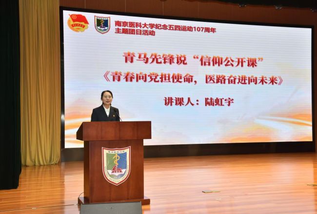 江苏省学生联合会驻会执行主席、全国青马高校班学员、我校马克思主义学院研究生陆虹宇同学作青马先锋说“信仰公开课”宣讲,围绕“做新时代挺膺担当的南医青年”主题,号召同学们用青春之我建设青春南医、青春中国。