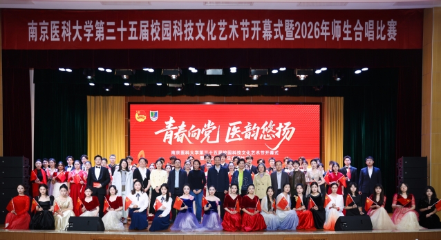 4月20日晚,我校第三十五届校园科技文化艺术节开幕式暨2026年师生合唱比赛在江宁校区大学生活动中心成功举办。校党委书记兰青,校党委常委、副校长沈瑞林,校外评委嘉宾,校党委办公室、宣传部、工会、学生工作部及各学院负责人,团干部和学生代表1400余人参与活动。
